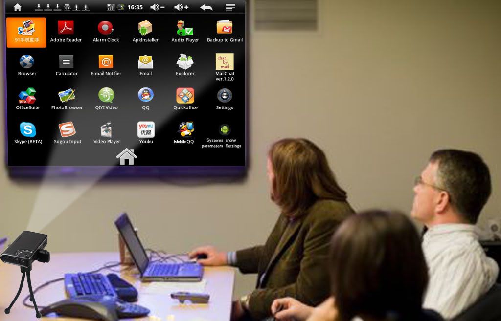 Power: : A full 1.5 hour battery life makes the HK-820 the ultimate smart pocket projector.