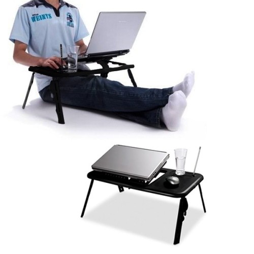 5. Description: Foldable laptop table with 2 USB fans, ABS plastic material with metal inside the legs.