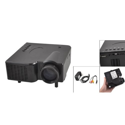 The projector is specially designed for use with video games, is capable of creating a creen from 17" to 60inch-perfect for a dorm room or bedroom. The LED lighting system projects a brillant image onto your wall at a 300:1 contrast ratio. It is equipped with tons of features, including lantern slide, picture zoom, 360 image rotation, and special SRS sound and autio affects to enhance your sound. Listen using the built-in speakers or plug into the headphone jack to keep the noise down. Connect your video game console or DVD player using the composite video RCA jacks, or plug in a USB stick or SD card with music or pictures files - this unit plays back MP3, WMA, AAC, JPG, TIF, and a variety of other formats, runs at both 16:9 and 4:3 aspect ratios. You can also hide its projection screen, when not in use.
