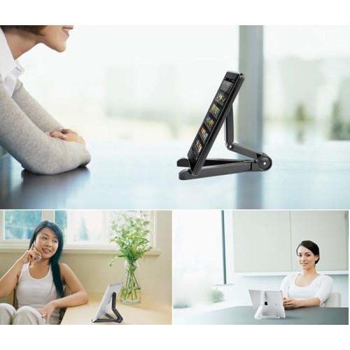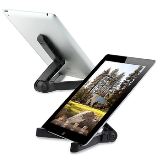 This is an exceedingly travel-friendly tablet stand designed for use with nearly all new lightweight tablet computers such as the Apple New iPad, Galaxy Tab, BlackBerry Play Book etc. A quality user-friendly stand is an essential tablet accessory for enhancing your mobile computing experience. This stand frees up your hands so you can watch movies, read an eBook or recipe, surf the web, conduct a presentation, view photos, read displayed sheet music, or conduct any other activity that would benefit from a foldable easel type of stand.